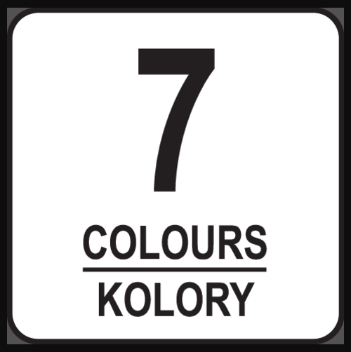 - czerwony, niebieski, fioletowy, zielony, żółty, biały, cyjan