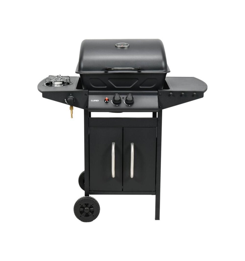 Funkcjonalny i kompaktowy grill gazowy 2+1 do przygotowywania potraw na świeżym powietrzu.