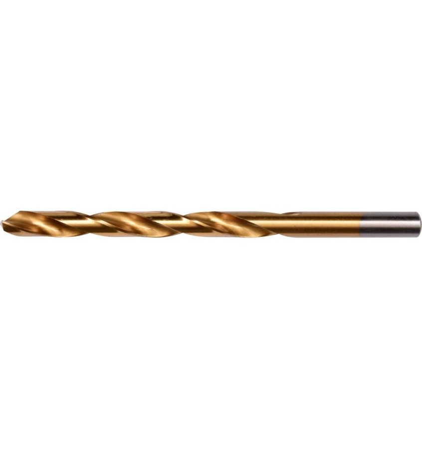 Wiertło szlifowane o agresywnej geometrii ostrza. Dzięki powłoce z azotku tytanu bardzo sprawnie odprowadza ciepło i nie ulega stępieniu podczas pracy w twardych gatunkach stali. Kąt natarcia ostrza wynoszący 135° umożliwia wiercenie nawet bez wcześniejszego użycia punktaka.