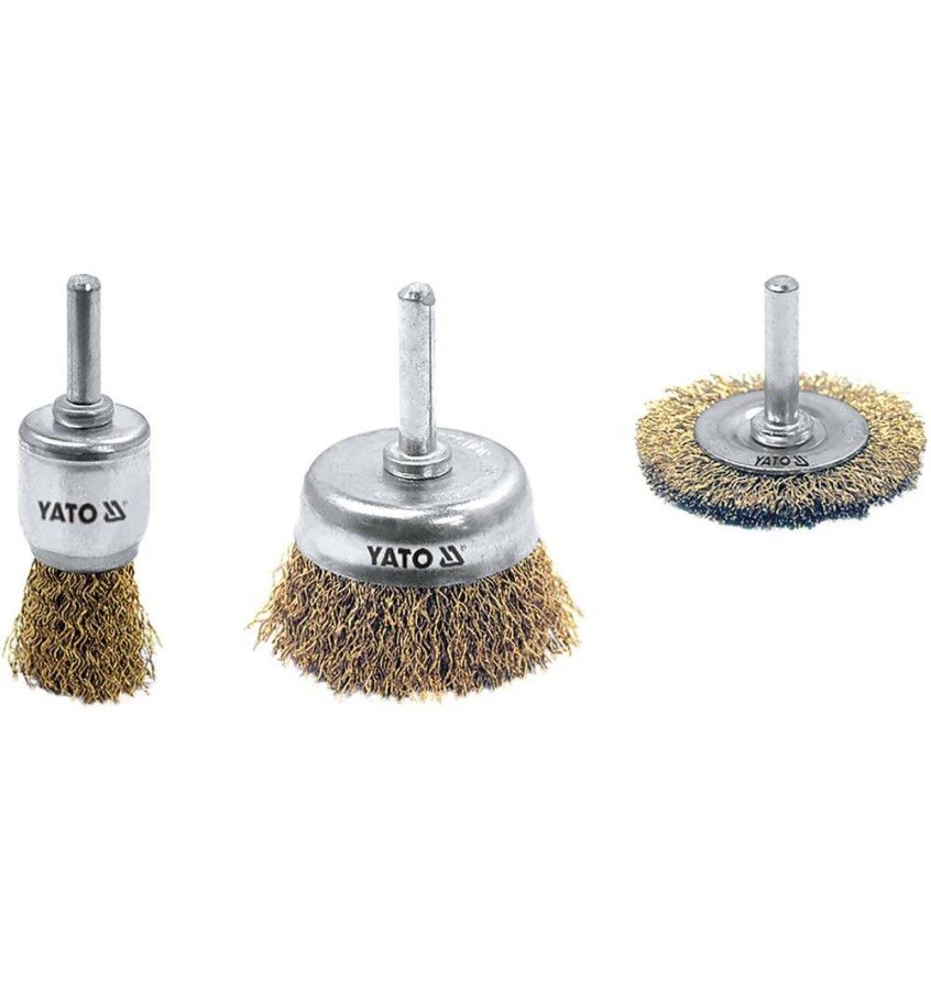 Szczotki druciane z trzpieniem, komplet 3 sztuk marki YATO.