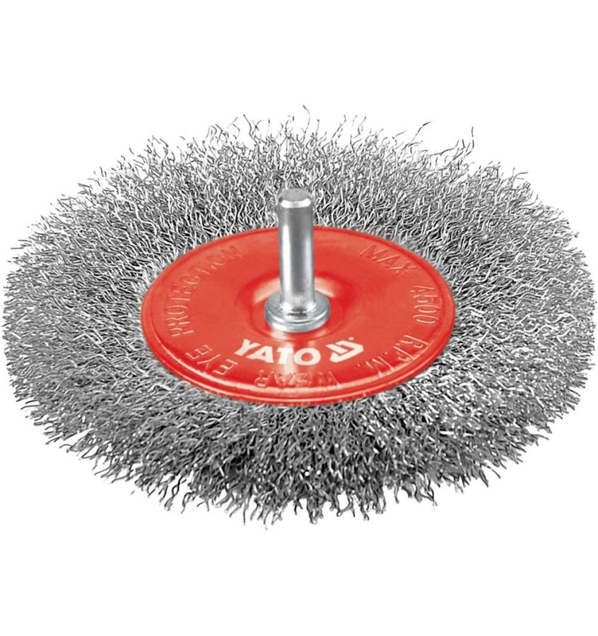 Szczotka tarczowa fi 100mm z trzpieniem, drut nierdzewny YT-4758 YATO