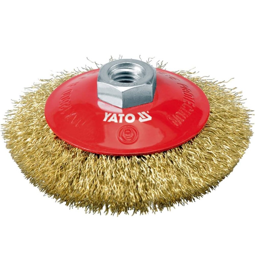 Szczotka tarczowa fi 100mm z gwintem m14, drut mosiądzowany YT-4761 YATO