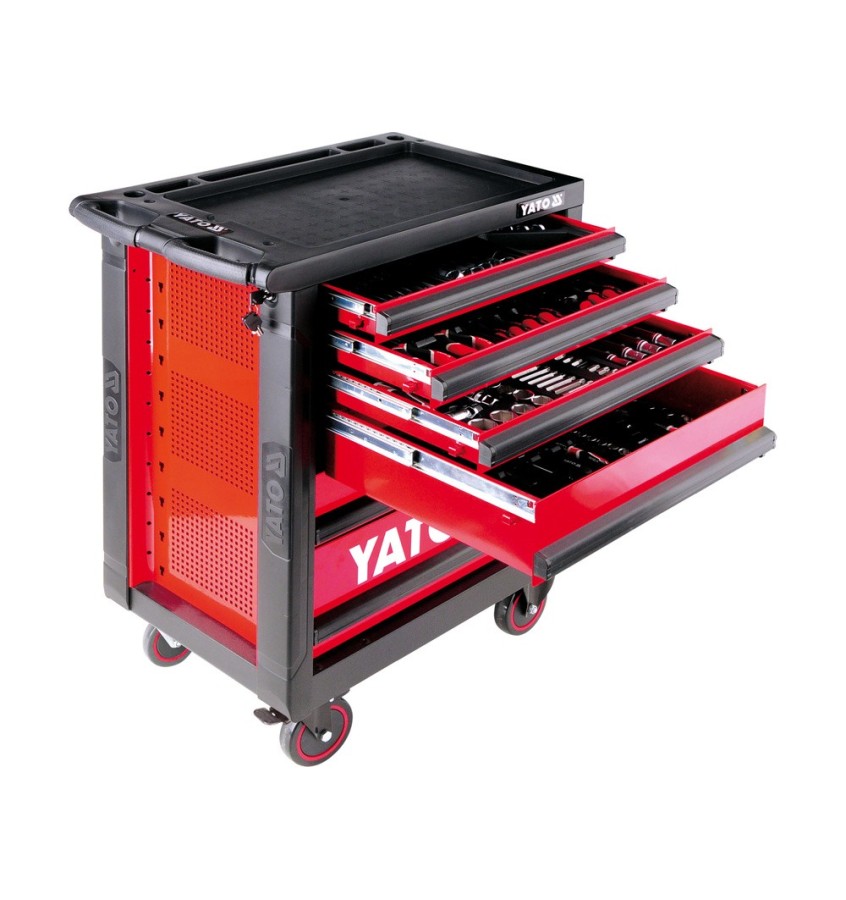 Szafka warsztatowa posiada narożniki odbojniki, które chronią przed przypadkowym uszkodzeniem, np. karoserii samochodu. Blat wykonany z polipropylenu wytrzymuje obciążenie 430 kg.