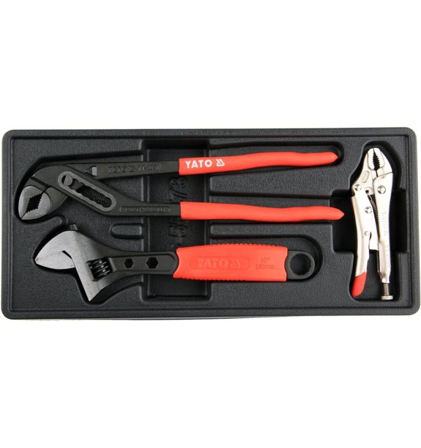 Wkład do szuflady zawierający szczypce 3 szt. - wkład - klucz nastawny YT-2172 długość 260 mm - szczypce samozaciskowe YT-2449 długość 125 mm - szczypce nastawne YT-2091 długość 300 mm