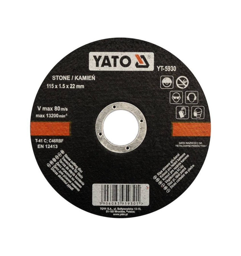 Tarcza do cięcia metalu marki YATO wykonana z wysokogatunkowego materiału ściernego o odpowiedniej twardości i granulacji.