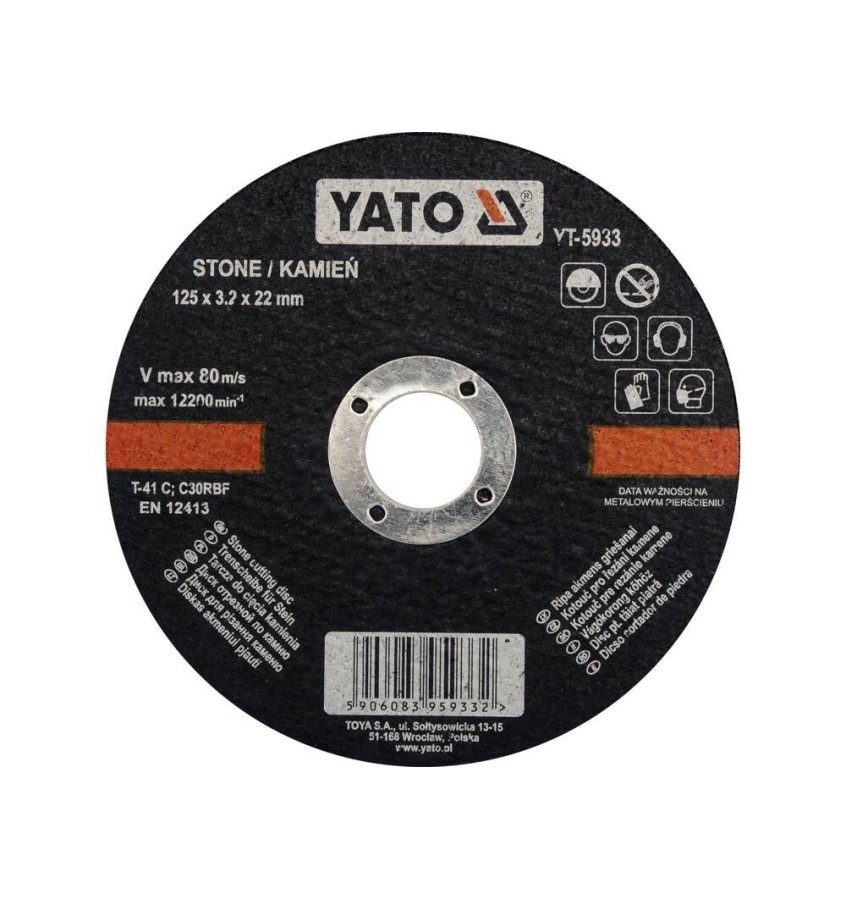 Tarcza do cięcia metalu marki YATO wykonana z wysokogatunkowego materiału ściernego o odpowiedniej twardości i granulacji.