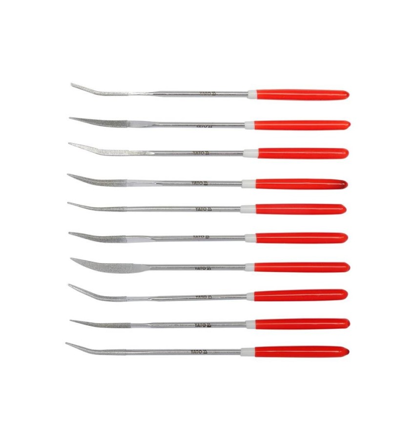 Zestaw 10 sztuk diamentowych pilników - iglaków o różnych profilach.