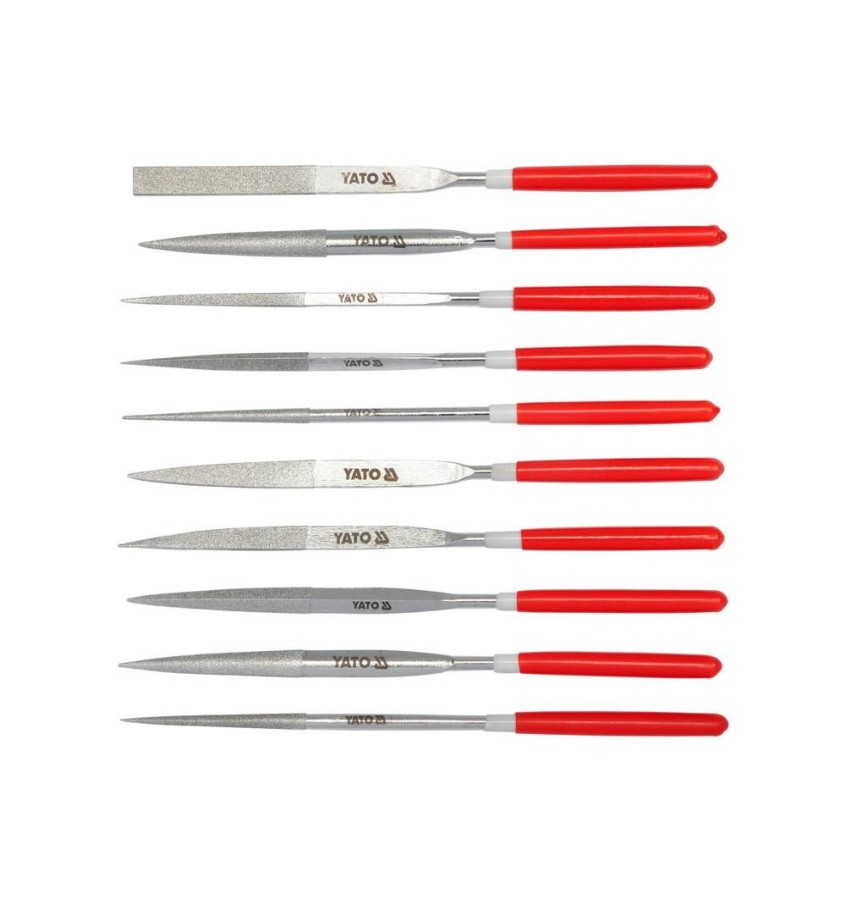 Zestaw 10 sztuk diamentowych pilników - iglaków o różnych profilach.