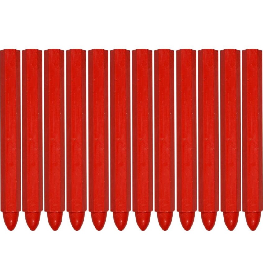 Kreda techniczna / tłusta/ do znakowania na metalu , drewnie, kamieniu, betonie, szkle, gumie. Kolor czerwony. wymiary ok. 120 x 12 mm. opk. 12 szt. Do znakowania ,pisania na różnych materiałach np. gumie, metalach, drewnie, kamieniu cegłach itp. Kreda techniczna kolor czerwony opk. 12 szt