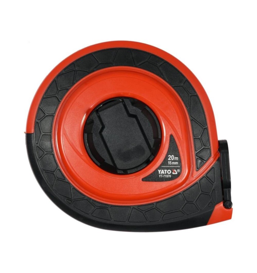 Taśma miernicza wykonana w trzeciej klasie dokładności z włókna szklanego. Umieszczona w odpornej kasecie z tworzywa ABS. Mechanizm zwijający z przekładnią trzykrotnie zwiększającą obroty.
