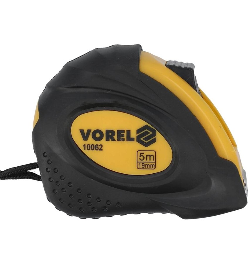 Miara stalowa zwijana o wymiarach 5 m x 19 mm wykonana w II klasie dokładności. Miara wyposażona jest w dwie blokady: stałą z przesuwanym klawiszem i szybką z przyciskiem w podstawie miary.