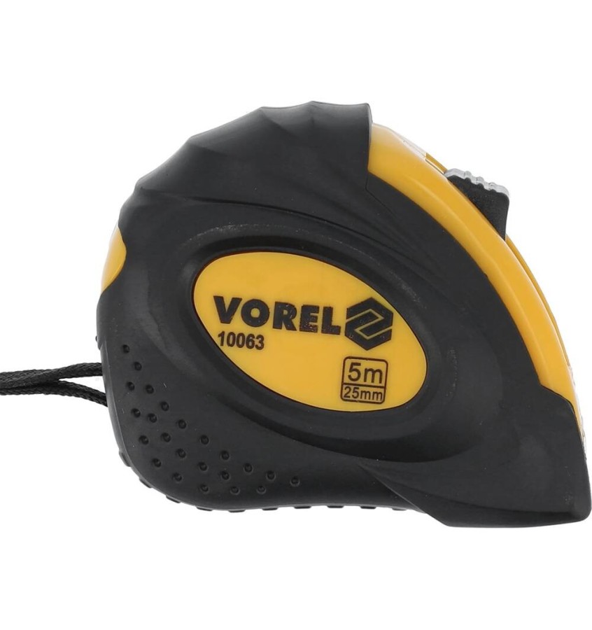 Miara stalowa zwijana o wymiarach 5 m x 25 mm wykonana w II klasie dokładności. Miara wyposażona jest w dwie blokady: stałą z przesuwanym klawiszem i szybką z przyciskiem w podstawie miary.