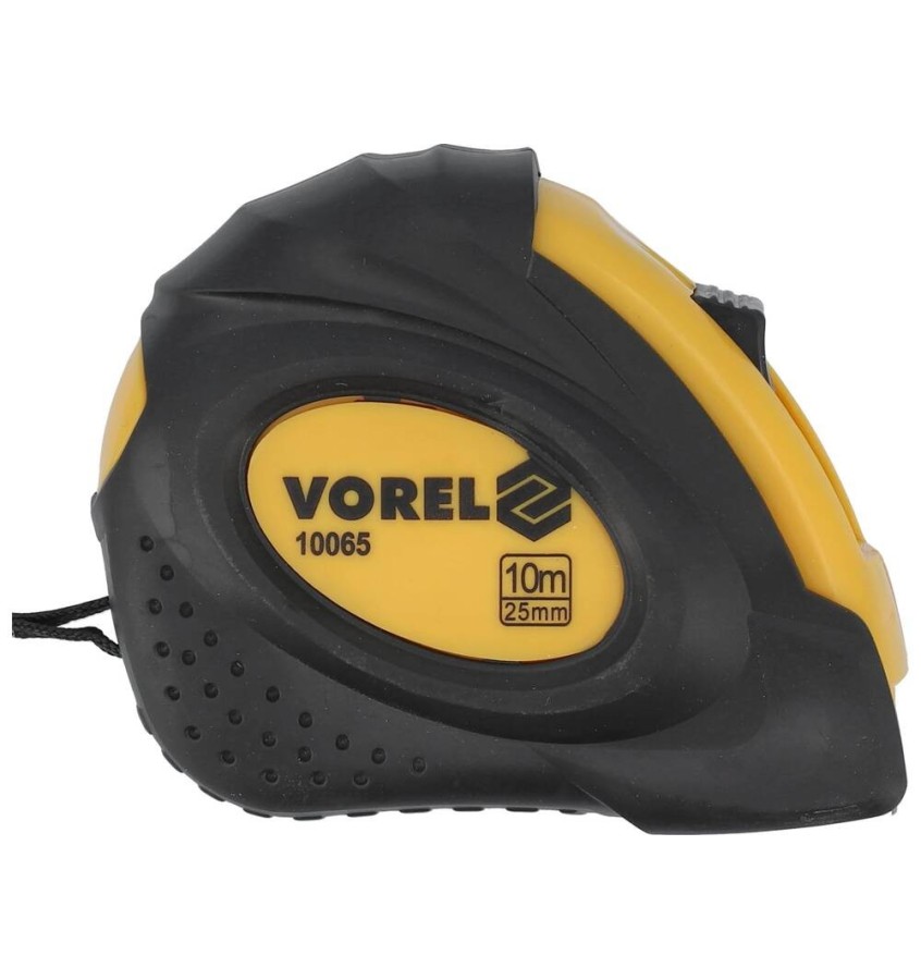 Miara stalowa zwijana o wymiarach 10 m x 25 mm wykonana w II klasie dokładności. Miara wyposażona jest w dwie blokady: stałą z przesuwanym klawiszem i szybką z przyciskiem w podstawie miary.