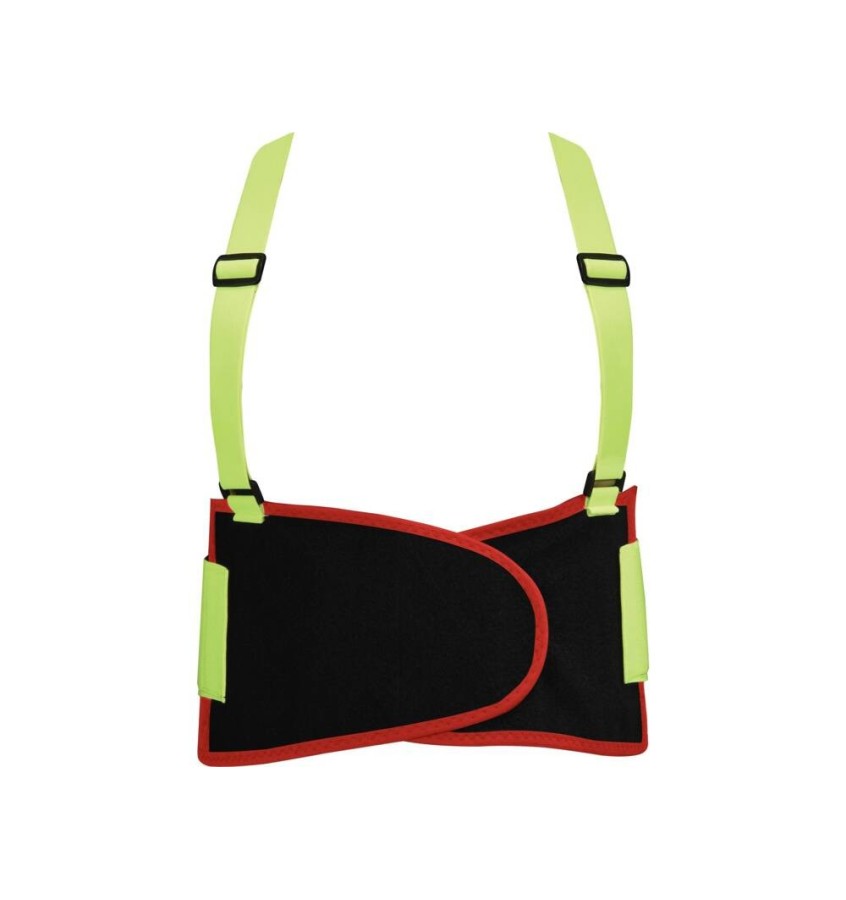 Lekki, elastyczny, odblaskowy pas antyprzeciążeniowy ułatwiający dźwiganie ciężkich przedmiotów.