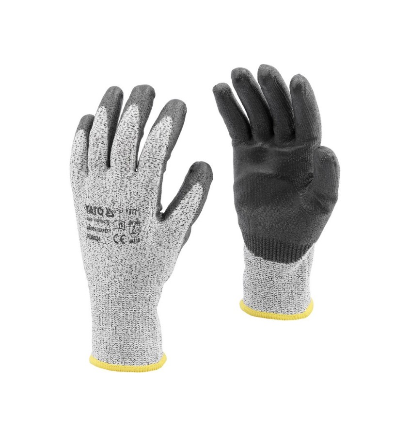 Rękawice YT-74771 zaprojektowano do ochrony dłoni przed zagrożeniami mechanicznymi, a w szczególności do ochrony przed ostrymi przedmiotami. Bezszwowa konstrukcja z polietylenu o zwiększonej odporności przekłada się na najwyższą według normy ochronę przed rozdarciem. Powlekanie grubą warstwą poliuretanu oprócz dodatkowego wzmocnienia ochrony przed przecięciem, gwarantuje najwyższą żywotność części chwytnej wśród rękawic powlekanych. Spełniają wymagania norm EN 420 oraz EN 388:2016.