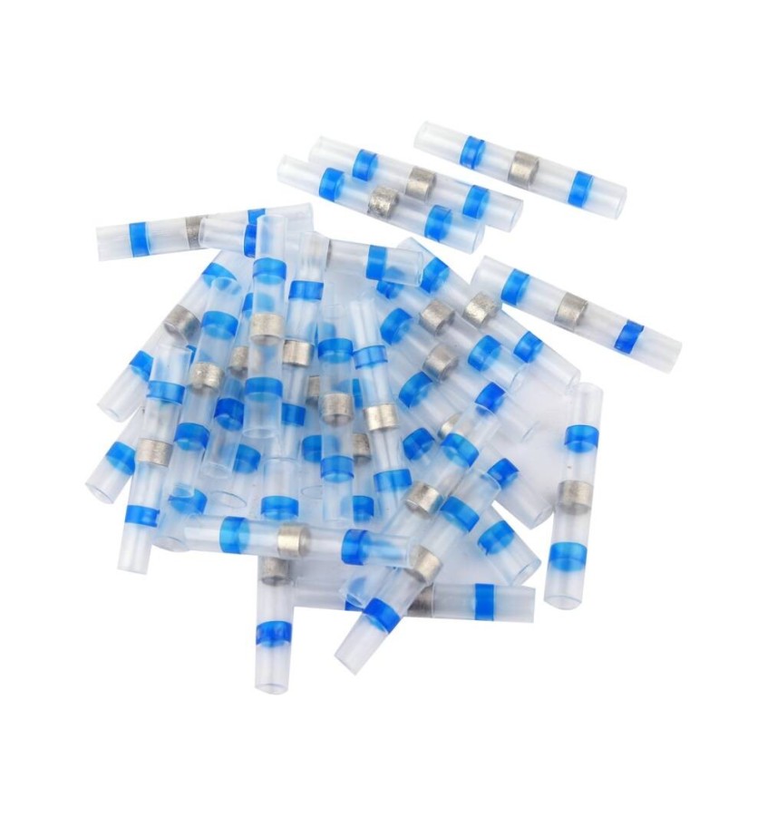 Przezroczyste rurki termokurczliwe YT-81453 z pierścieniem cyny na środku oraz dwoma pierścieniami kleju termicznego po bokach, który dodatkowo uszczelnia połączenie.