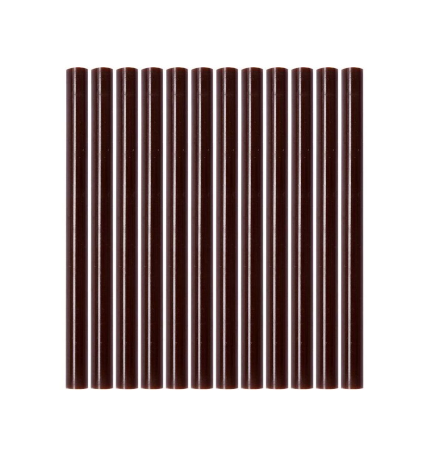 Klej termotopliwy brązowy o średnicy 7,2 mm i długości 100 mm. W opakowaniu znajduje się 12 lasek kleju.