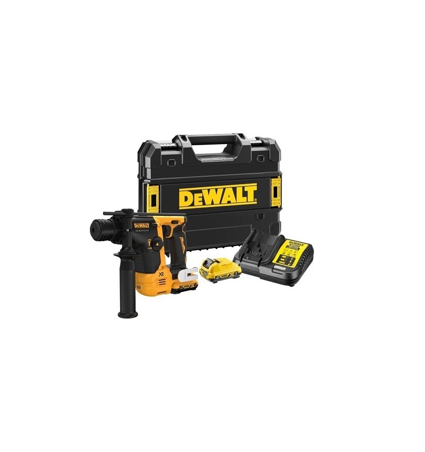 Akumulatorowa młotowiertarka udarowa 12V SDS-Plus DCH072L2 DeWALT to ultra kompaktowa młotowiertarka z systemem SDS-Plus, która dzięki nowoczesnemu bezszczotkowemu silnikowi 12V zapewnia wysoką wydajność w klasie i niezrównany stosunek mocy do masy.