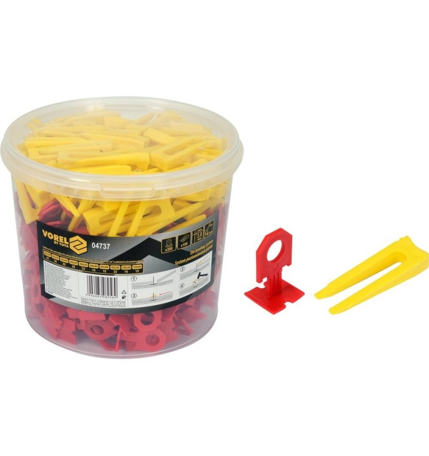 Nowoczesny system do poziomowania płytek, który ułatwia i przyspiesza ich układanie. Zestaw składa się z 300 zrywalnych klipsów oraz 100 klinów wielorazowego użytku, wykonanych z wysokogatunkowego tworzywa sztucznego. Pomaga eliminować nierówności powierzchni.