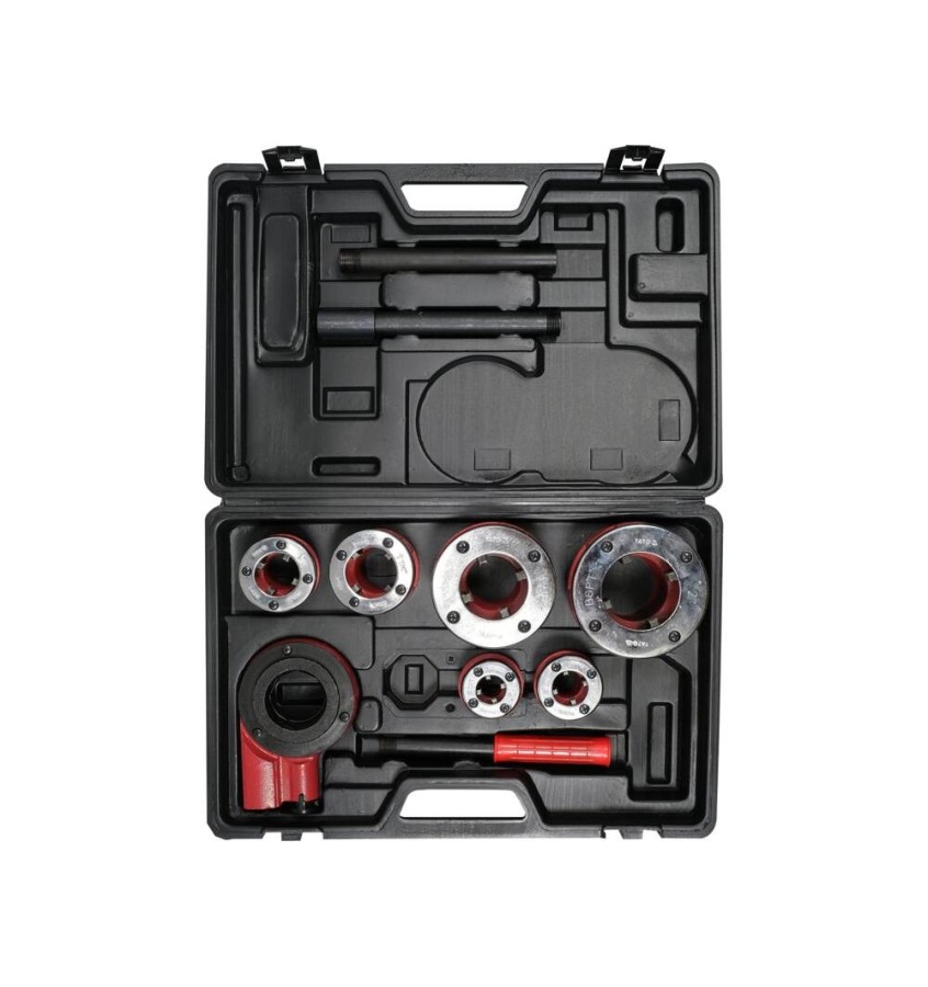 Wysokiej jakości zestaw do gwintowania rur. System grzechotkowy gwintownicy oraz przełącznik kierunku pracy znacznie ułatwiają gwintowanie. Głowice wykonane są z bardzo trwałego i mocnego materiału 9Cr2.