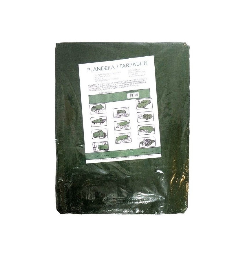 Plandeka przeznaczona do zabezpieczania oraz okrywania przedmiotów na zewnątrz i wewnątrz pomieszczeń. Krawędzie wzmacniane, nabite w aluminiowe oczka. Wodoodporna.