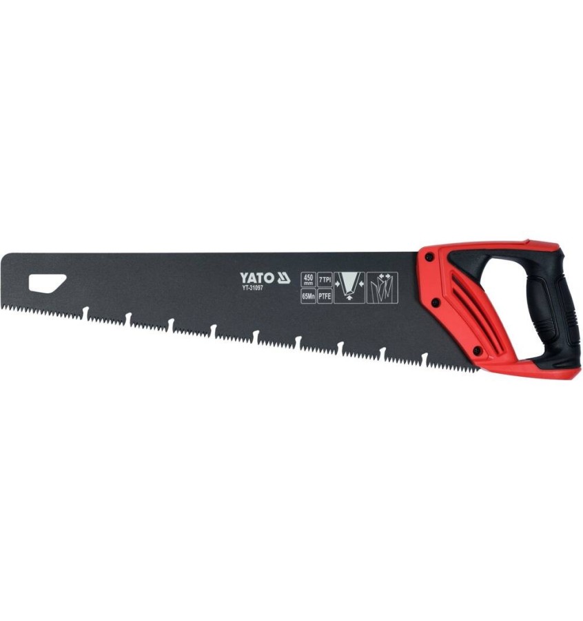 Piła płatnica z trójstronnie ostrzonymi zębami, rozmieszczonymi w grupach po 9 na cal. Przerwy w brzeszczocie ułatwiają usuwanie trocin. Czarna powłoka teflonowa PTFE zmniejsza tarcie. Zamknięta rękojeść z podgumowanymi elementami ułatwia pewne trzymanie piły.
