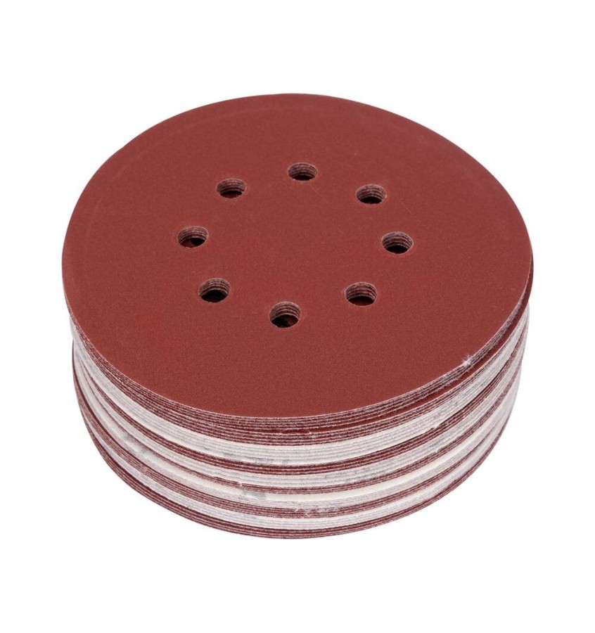 8 OTWORÓW, ŚREDNICA 150MM, ZIARNISTOŚĆ 240, MATERIAŁ: ALUMINIUM OXIDE, BACK: HOOK FASTENER,50SZT, SPOIWO: ŻYWICA EPOKSYDOWA, NASYP: PÓŁOTWARTY. KRĄŻKI ŚCIERNE Z SZEŚCIOMA OTWORAMI PRZEZNACZONE SĄ DO SZLIFOWANIA FARB, LAKIERU, POWIERZCHNI DREWNIANYCH I METALOWYCH. WSPÓŁPRACUJĄ ZE SZLIFIERKAMI OSCYLACYJNYMI I MIMŚRODOWYMI YT-82207, YT-82206