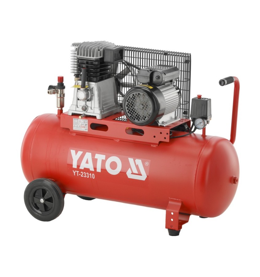 Kompresor olejowy z dwoma przyłączami i regulacją ciśnienia. Ma zastosowanie do napędzania urządzeń sprężonym powietrzem, przedmuchiwania nawiertów i czyszczenia powierzchni. Jest nieocenionym wsparciem w przemyśle, na budowie, w warsztacie i rolnictwie.