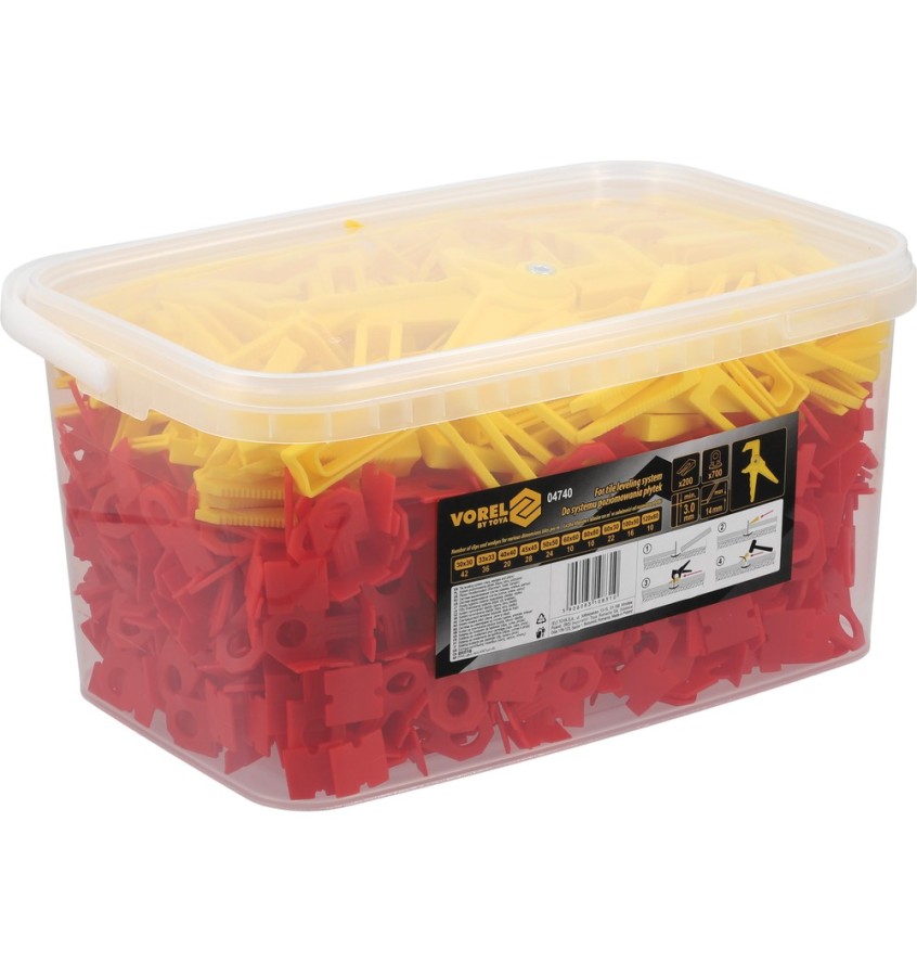 Opis produktu: SYSTEM POZIOMOWANIA PŁYTEK 3mm KLIPSY KLINY 700+200 SZCZYPCE Vorel