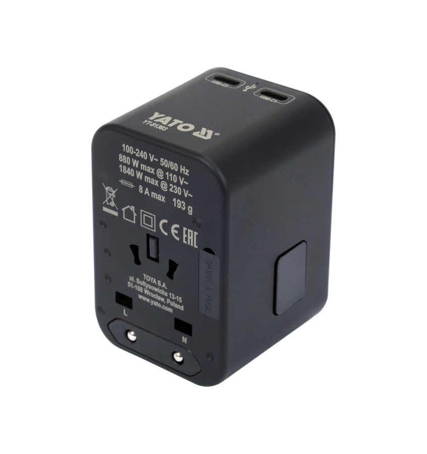 Współczesne smartfony coraz częściej dostarczane są bez ładowarek. Uniwersalny adapter podrózny Yato to nie tylko niezbędny produkt na zagraniczne podróże, ale także wysokiej jakości szybka ładowarka z potwierdzonymi wieloma testami parametrami, którą bezpiecznie możemy ładować zarówno nasze smartfony, jak i tablety.