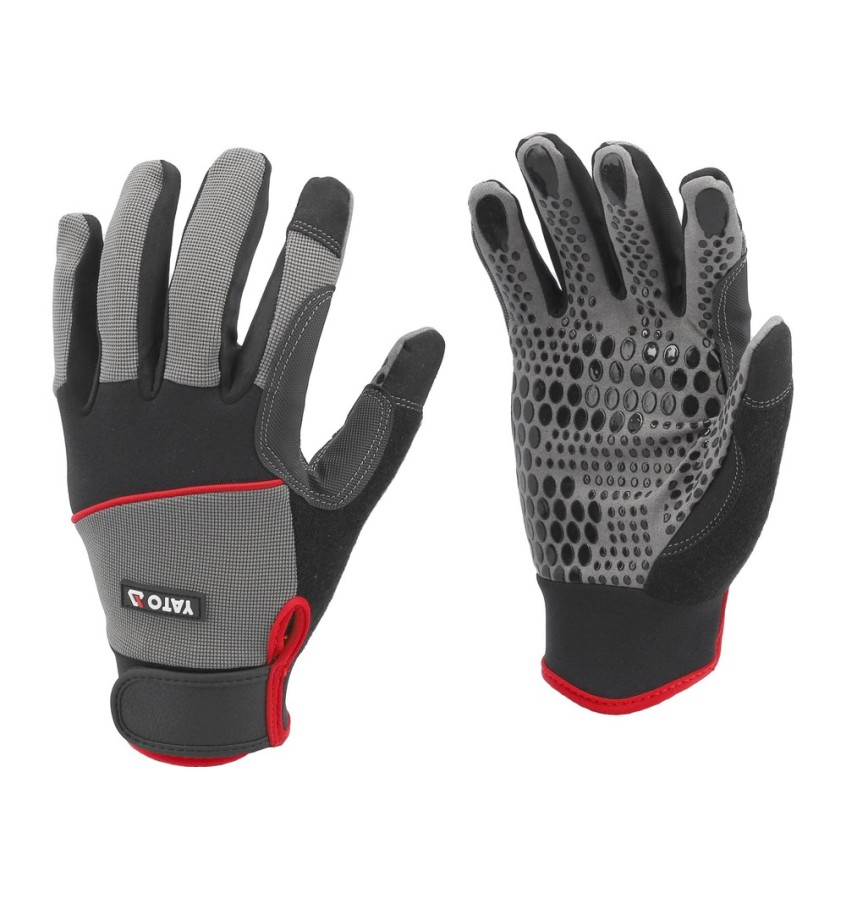 Rękawice robocze z dodatkowymi wzmocnieniami oraz sylikonowym anty-poślizgowym nakropieniem w części chwytnej, które znacznie ułatwia trzymanie przedmiotów i zmniejsza możliwość wyślizgnięcia się narzędzia z ręki. Polecane do pracy z narzędziami ręcznymi, elektronarzędziami czy podczas przenoszenia towarów.