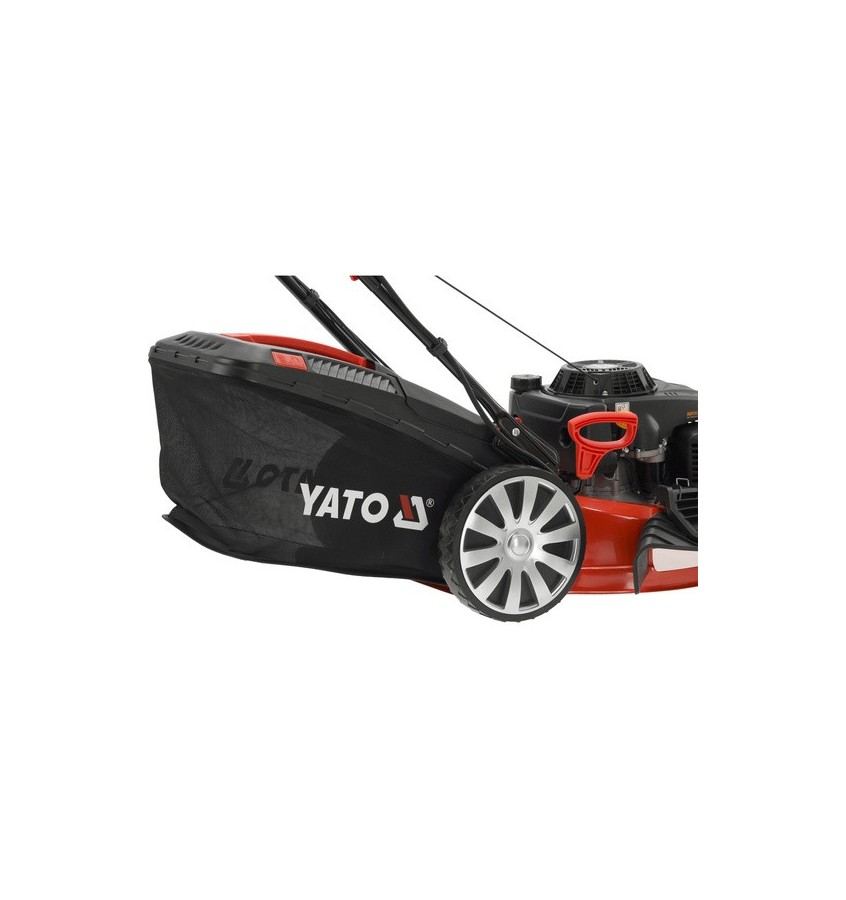 W kosiarkę wbudowany jest elektryczny rozrusznik (w zestawie bateria 2 Ah wraz z ładowarką systemu YATO 18 V) co w znacznym stopniu ułatwia odpalenie. Silnik o mocy 4,5 kW poradzi sobie nawet z bardzo wysoką trawą.
