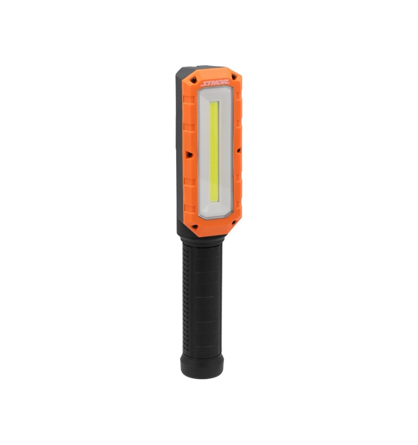 Lekka i poręczna lampa warsztatowa z dwoma trybami pracy, pozwalającymi dostosować oświetlenie do wykonywanych czynności i poziomu naładowania baterii. Zasięg pracy 20 m zapewnia dobre doświetlenie przestrzeni roboczej. Dodatkowym atutem są magnesy w obudowie i haczyk ułatwiające zawieszenie lampy.