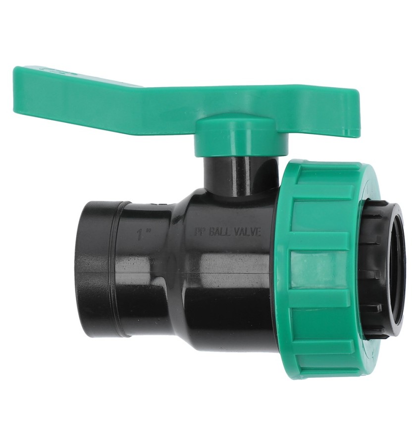 Zawór kulowy żeński/żeński 1" x 1" przeznaczony do łączenia rur PE, PP w instalacjach wodnych.