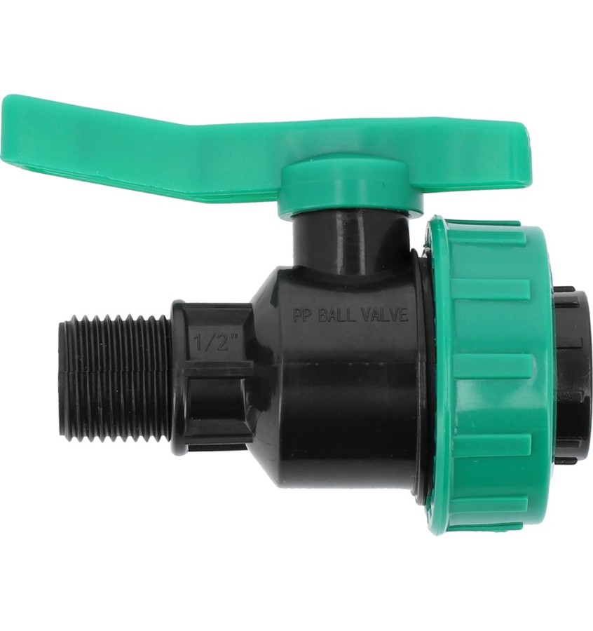 Zawór kulowy żeński/męski 1/2" x 1/2" przeznaczony do łączenia rur PE, PP w instalacjach wodnych.