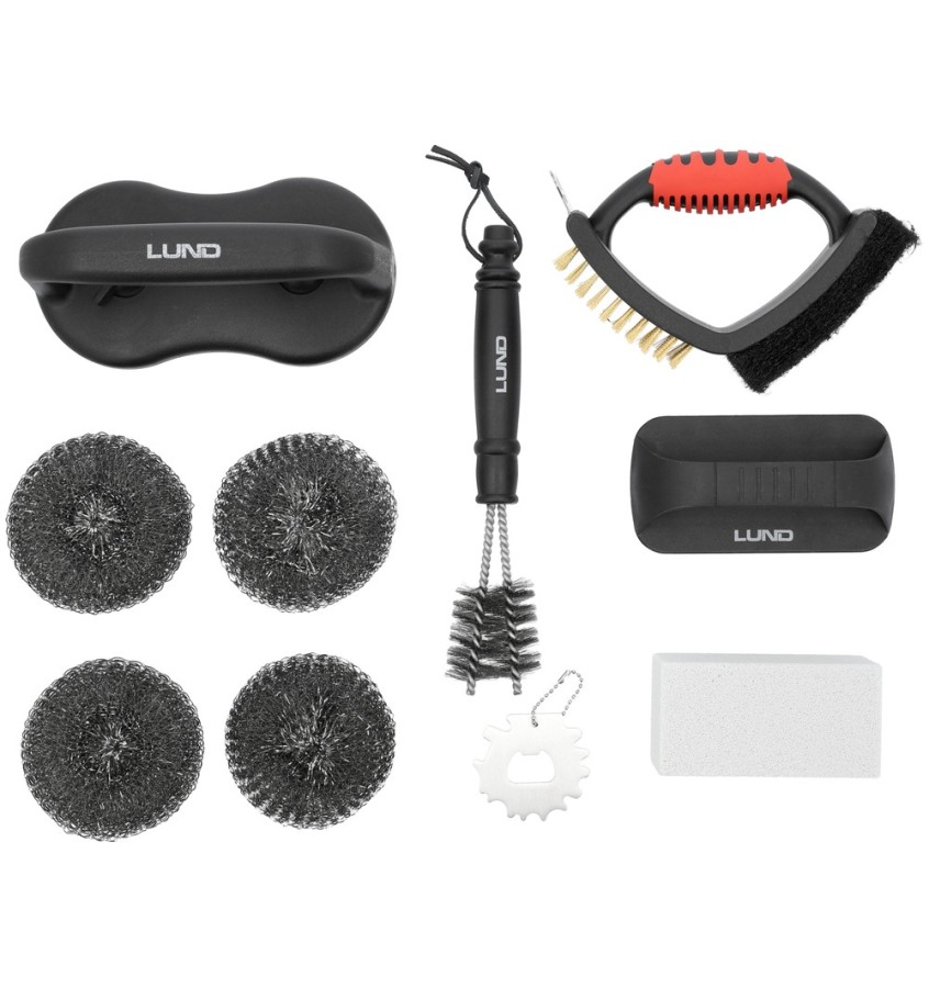 Zestaw do czyszczenia grilli zawiera wytrzymałe szczotki, które umożliwiają staranne usuwanie przypalonych resztek jedzenia, tłuszczu lub węgla z powierzchni grilli, rusztów, komór wędzarni, popielników. Różne wykończenia powierzchni roboczej pozwalają dostosować szczotkę do rodzaju zabrudzeń i czyszczonej powierzchni.