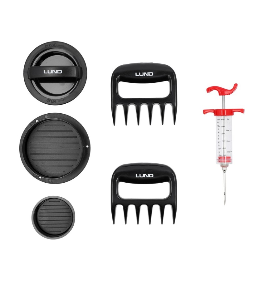 Składa się z trzech uniwersalnych akcesoriów, pomagających uzyskać idealny smak i strukturę mięsa. Demontowalne części ułatwiają czyszczenie, zapewniając higieniczne i długie użytkowanie.