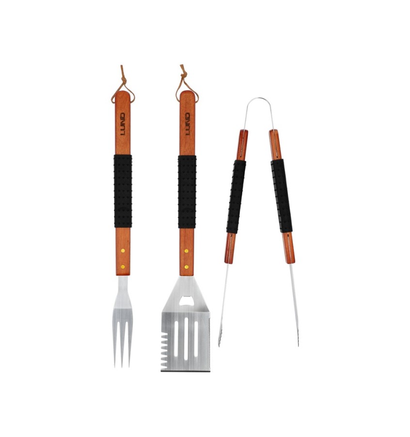 Opis produktu: ZESTAW DO GRILLOWANIA 3SZT, DREWNIANA RĘKOJEŚĆ