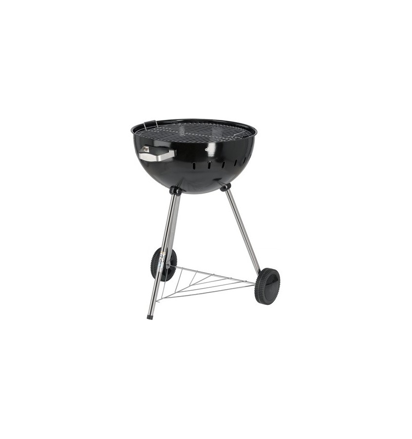 Grill węglowy ze stali z chromowanym rusztem i paleniskiem zamykanym pokrywą. Wyposażony w otwór do regulacji cyrkulacji powietrza w celu stałej kontroli poziomu żaru i temperatury. Lekka konstrukcja i kółka zapewniają swobodę przemieszczania grilla w dowolne miejsce na tarasie lub w ogrodzie.