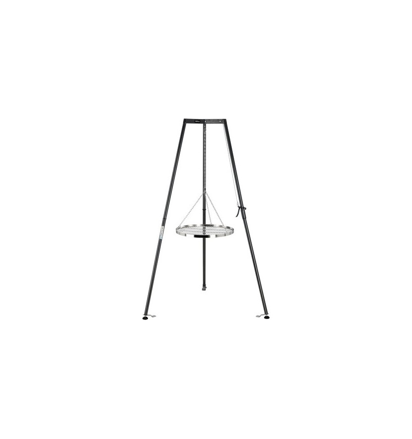 Profesjonalny grill węglowy na trójnogu z rusztem XXL (66cm) ze stali nierdzewnej. Posiada wygodny system regulacji wysokości, stabilną konstrukcję i możliwość dostosowania podstawy do podłoża. Dodatkowym atutem jest wykonany ze stali nierdzewnej łańcuch. Stabilna konstrukcja wraz z rusztem waży ponad 14kg i umożliwia udźwig jedzenia aż do 4kg!
