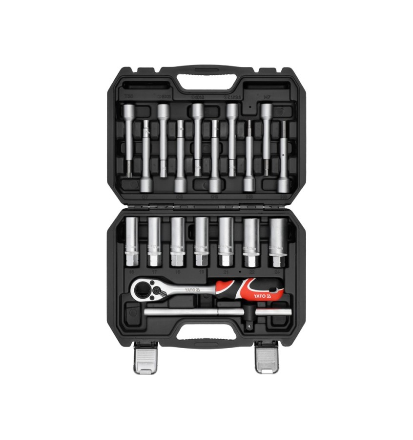 Opis produktu: KLUCZE DO MOCOWANIA AMORTYZATORÓW 19 ELEMENTÓW Z GRZECHOTKĄ PRZELOTOWĄ