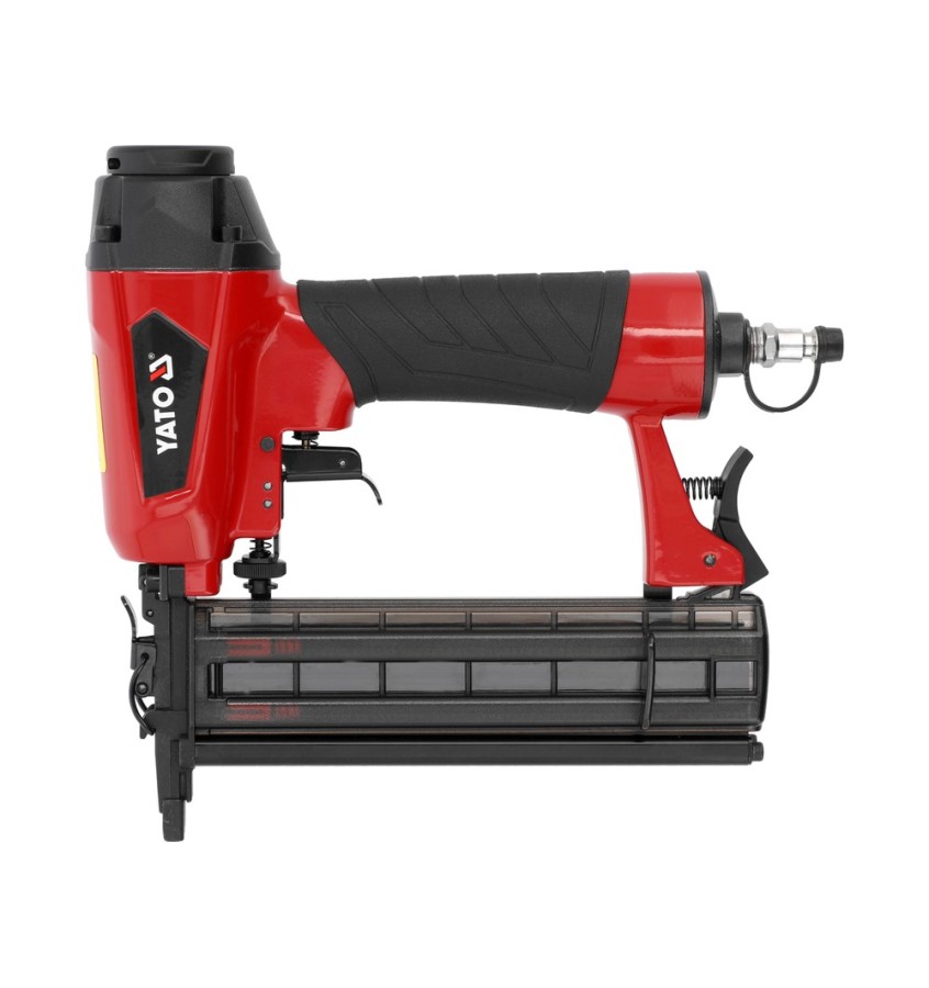 Zasilanie pneumatyczne o maksymalnym ciśnieniu roboczym 0,8 MPa zapewnia stałą siłę wbijania i wysoką wydajność. Standardowe przyłącze powietrza i dopasowanie do przewodu 3/8" (9,5 mm) sprawiają, że narzędzie bez problemu współpracuje z większością kompresorów dostępnych na rynku.