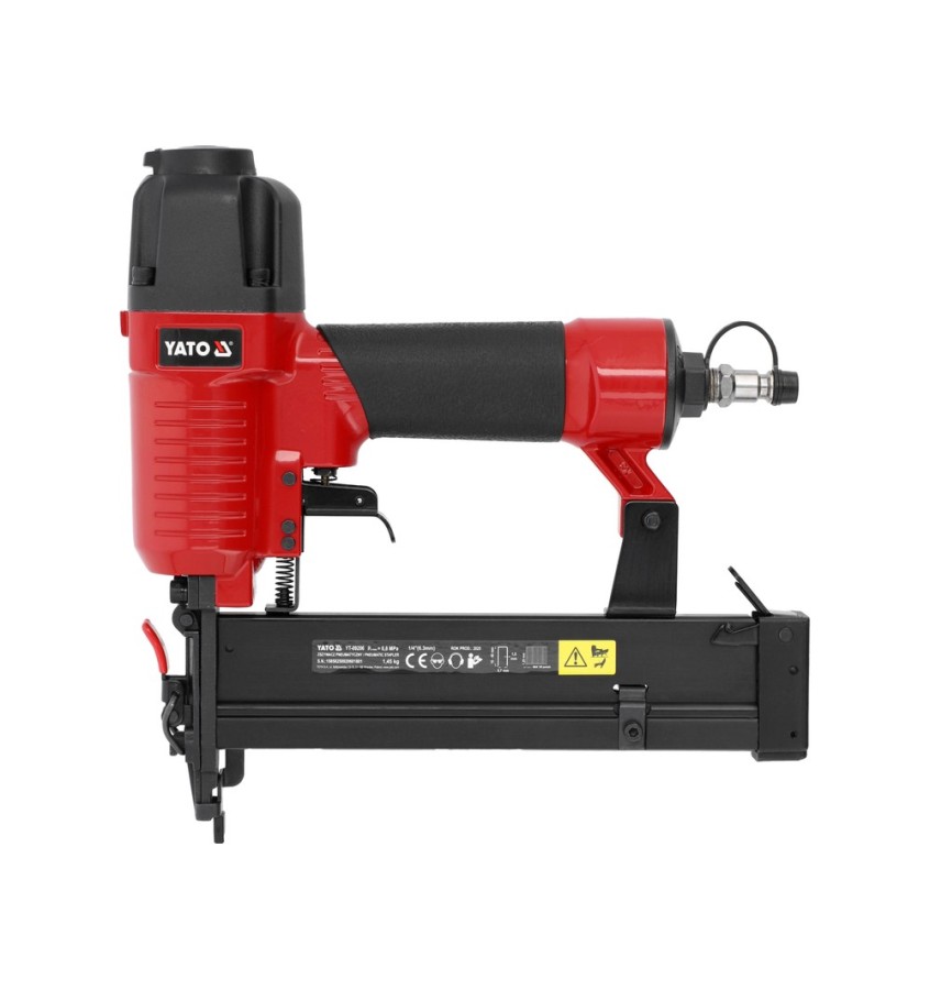 Zasilanie pneumatyczne o maksymalnym ciśnieniu roboczym 0,8 MPa zapewnia stałą siłę wbijania i wysoką wydajność. Standardowe przyłącze powietrza i dopasowanie do przewodu 3/8" (9,5 mm) sprawiają, że narzędzie bez problemu współpracuje z większością kompresorów dostępnych na rynku.