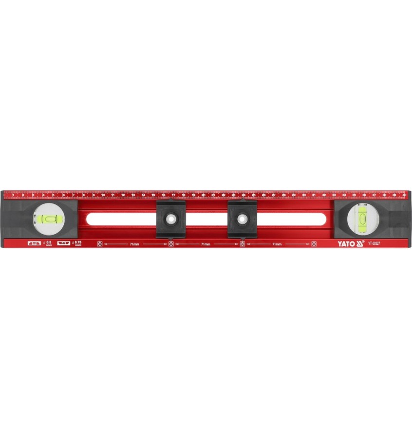 Poziomnica dla elektryków pozwalająca na szybki i precyzyjny pomiar, wyrównywanie i znakowanie. Umożliwia przenoszenie i oznaczaczanie odległości za pomocą suwaków znakujących na skali pomiarowej.