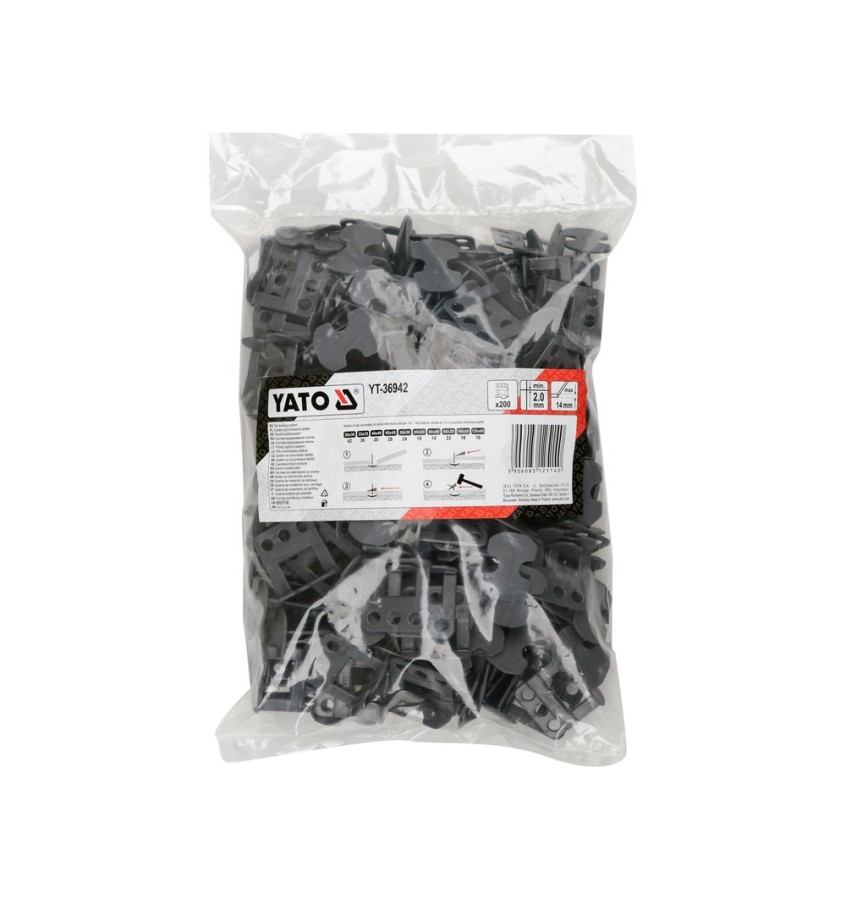 Zestaw zrywalnych klipsów (bramek) do systemu poziomowania płytek, który ułatwia i przyspiesza ich układanie, a także pomaga eliminować nierówności powierzchni. Przeznaczony jest do płytek ceramicznych, gresowych, rektyfikowanych podłogowych i ściennych o różnych rozmiarach i grubości w zakresie 5-14 mm oraz minimalnej fudze 2 mm. Wykonany z wysokogatunkowego tworzywa sztucznego.