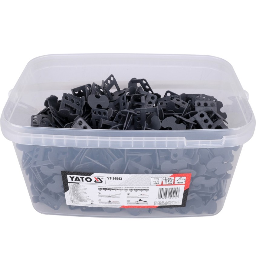 Zestaw zrywalnych klipsów (bramek) do systemu poziomowania płytek, który ułatwia i przyspiesza ich układanie, a także pomaga eliminować nierówności powierzchni. Przeznaczony jest do płytek ceramicznych, gresowych, rektyfikowanych podłogowych i ściennych o różnych rozmiarach i grubości w zakresie 5-14 mm oraz minimalnej fudze 2 mm. Wykonany z wysokogatunkowego tworzywa sztucznego.