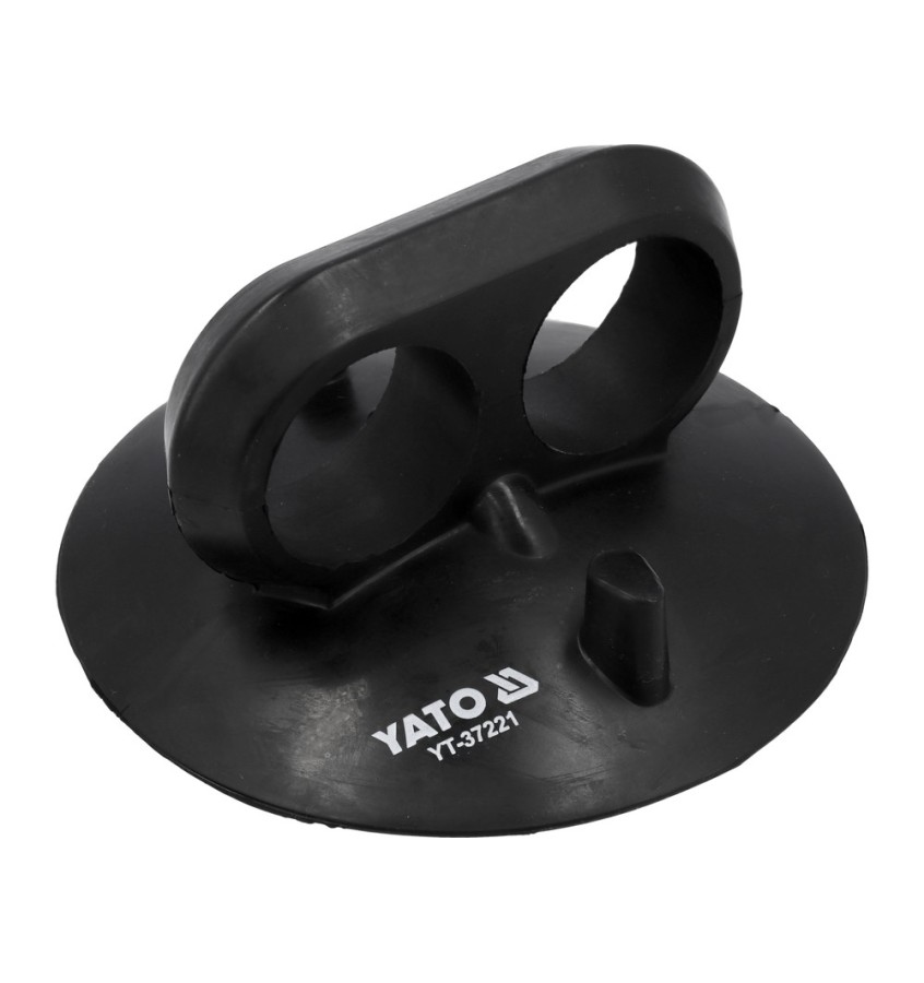 Uchwyt z przyssawką do przenoszenia elementów o płaskiej, gładkiej powierzchni, np. arkuszy blach, płytek ceramicznych. Przyssawka wykonana w całości z silikonu ułatwia czyszczenie po zakończeniu prac.