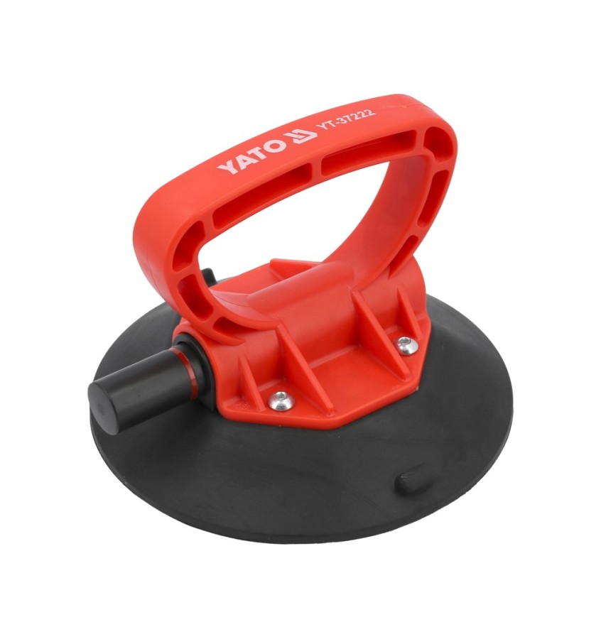 Uchwyt z przyssawką do przenoszenia elementów o płaskiej, gładkiej powierzchni, np. szyb okiennych, samochodowych, arkuszy blach, płytek ceramicznych, płyt laminowanych. Pompka próżniowa odsysa powietrze między przyssawką a przedmiotem, zapewniając doskonałą przyczepność.