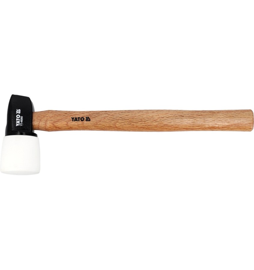 Gumowy młotek z białym bijakiem przydatny podczas montażu podłóg.