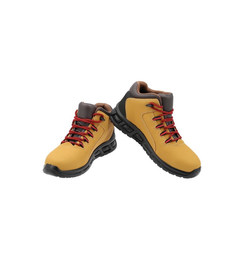 Cholewka z wysokiej jakości skóry naturalnej oraz specjalne wstawki przy języku mocno ograniczają przepuszczanie i wchłanianie wody. Certyfikowany podnosek oraz wkładka antyprzebiciowa z tworzywa sztucznego są lżejsze od ich stalowych odpowiedników. Wkładka jest elastyczna i nie ogranicza zgięć śródstopia.